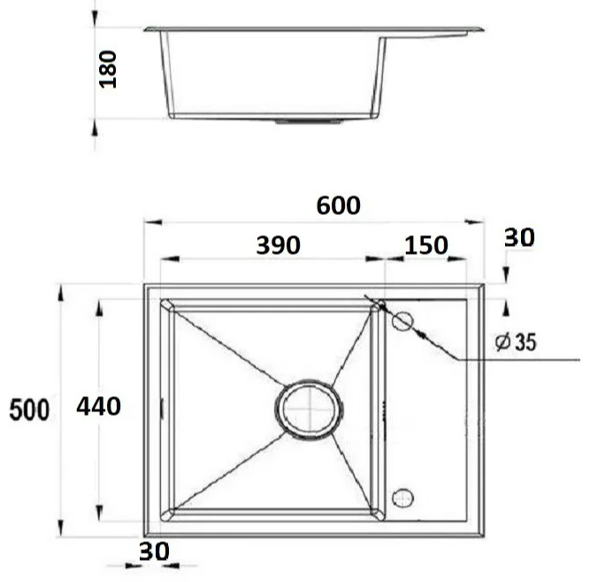 Диаметр сливного отверстия 9 см
